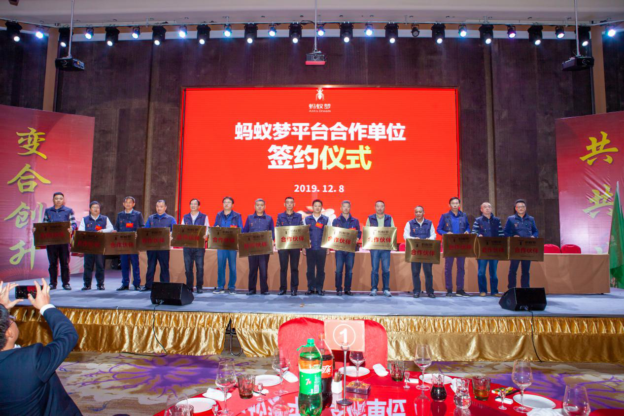 12月8日晚,螞蟻夢平臺向與會代表獻(xiàn)上了一臺精心準(zhǔn)備的《螞蟻夢﹒萬綠情》晚會,在回憶行業(yè)曲折發(fā)展的歷程中筑夢未來;并隆重舉行了湖北統(tǒng)領(lǐng)、江蘇潤天、長沙保靈等第一批17家企業(yè)與螞蟻夢平臺的簽約儀式。